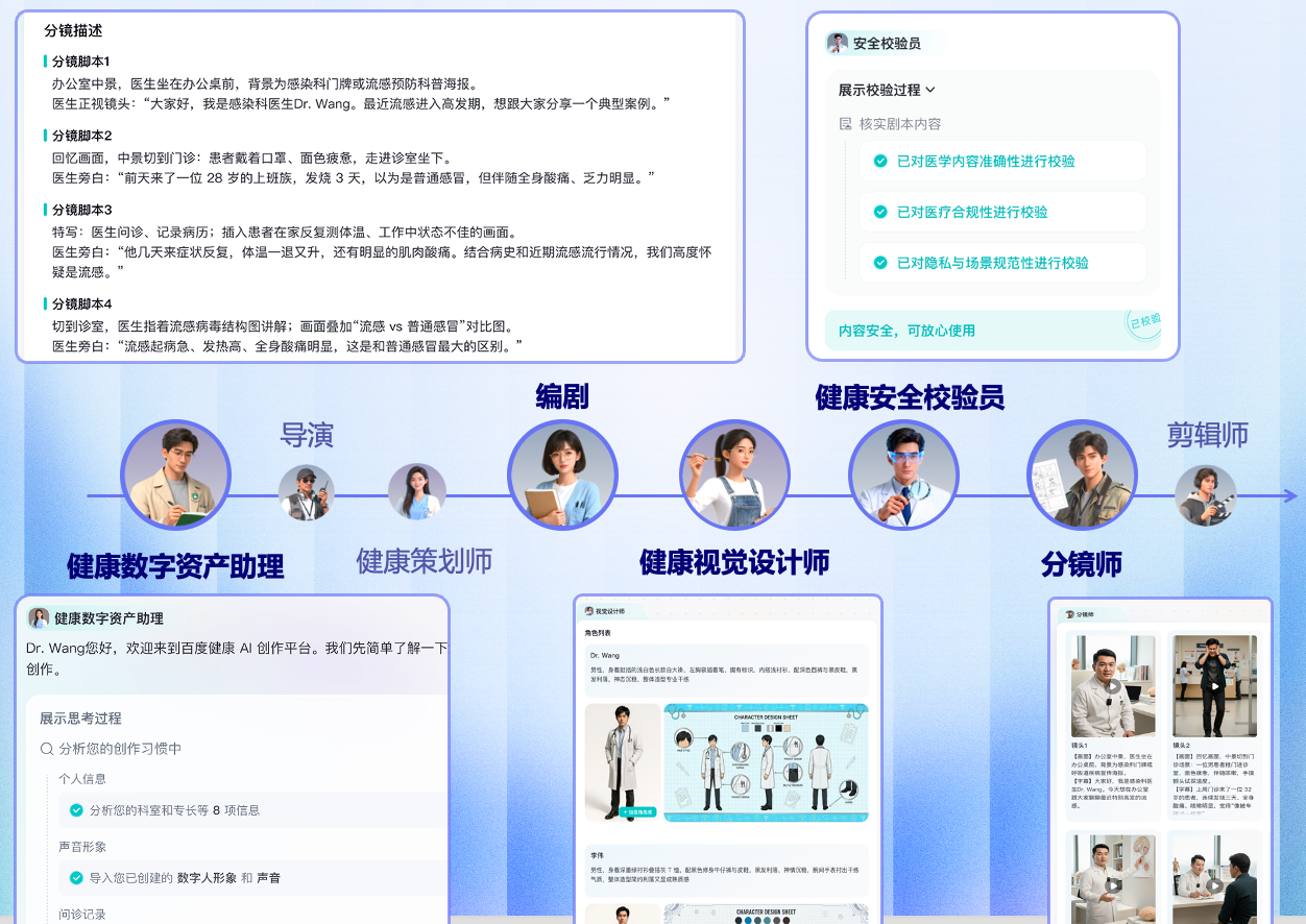 翟悦介绍,Dr.Flow通过“专业可控、智能辅助、便捷操作、一站式经营”四大核心能力破解痛点:AI创作天团覆盖选题策划、脚本撰写、合规校验、视频制作全流程,医生仅需对话即可指挥操作,10分钟完成一条视频;个人健康知识库沉淀,以及10余种专属医患角色库和超150万条合规医学素材库,保障内容专业且风格统一;平台还支持一键全网分发与多重收益变现,让从业者聚焦专业内容打磨。